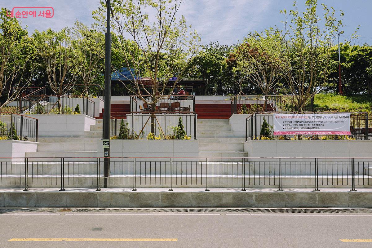 이곳의 수변활력거점은 ‘구로 피크닉 가든’과 마주보는 곳에 계단형 전망대 형태로 만나볼 수 있습니다.