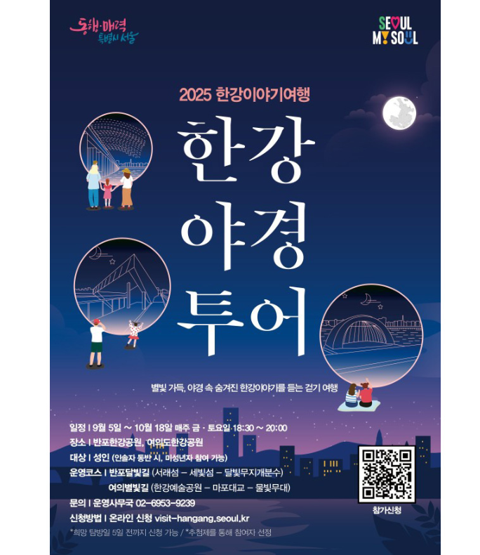 - 신청 방법 : ‘한강이야기여행’ 누리집에서 희망일 5일 전까지 신청 → 추첨 결과는 4일 전 개별 안내