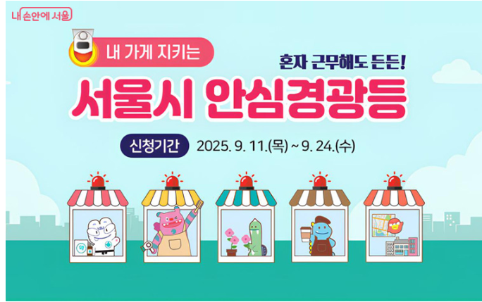 서울시가 ‘나홀로 사장님’의 안전을 지키기 위해 ‘내 가게 지키는 안심경광등’ 신청을 9월 11일부터 받는다.