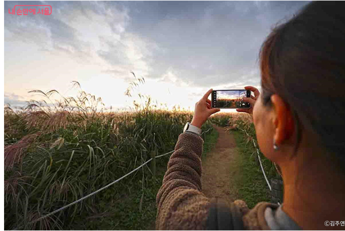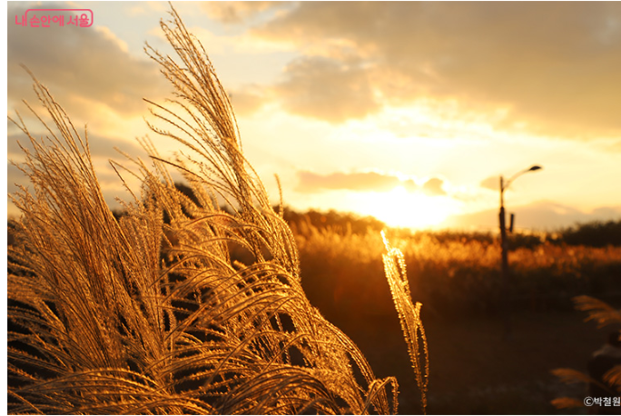 서울의 가을 정취 속에서 빛과 억새가 만들어내는 찬란한 순간,