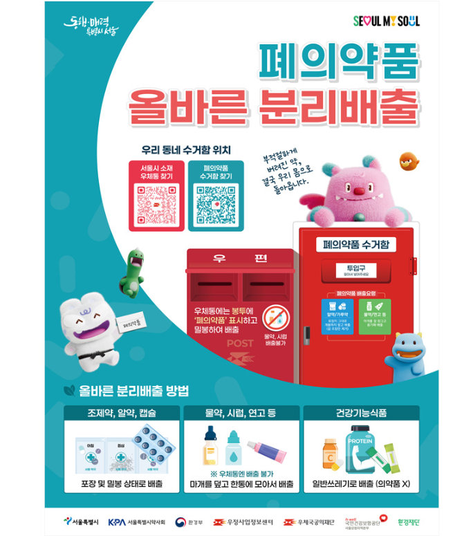 서울시가 폐의약품 수거함 QR 스티커와 올바른 분리배출 포스터를 서울 시내 약국에 배포한다.