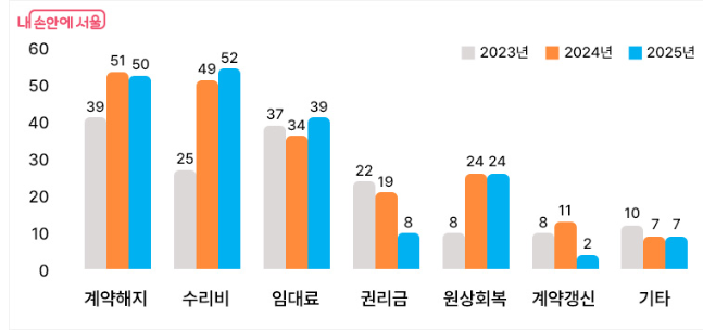 - 수리비 및 누수 관련 (52건): 가장 흔하면서도 감정 소모가 심한 분야입니다.