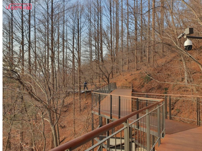 지정 코스 중 ‘하늘숲길’을 선택했는데, 이곳은 남산도서관 입구부터 체력단련장까지 약 1.45km의 무장애 데크길로 조성되어 있어 누구나 편하게 걸을 수 있습니다.
