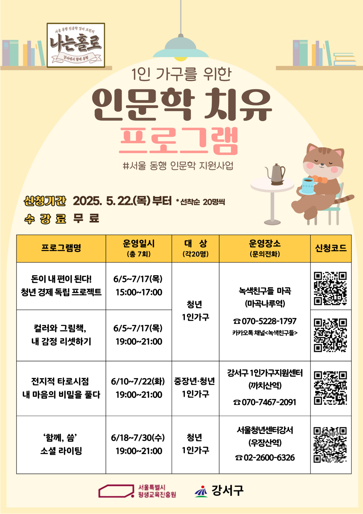 ‘서울 동행 인문학’은 서울시의 약자동행 정책의 하나로, 인문학을 통해 정서적 치유와 사회적 고립 완화를 목표로 합니다. 특히 올해는 각 자치구가 주도해 지역 주민의 현실과 지역의 특성을 반영한 맞춤형 인문학 강좌로 구성되었습니다.