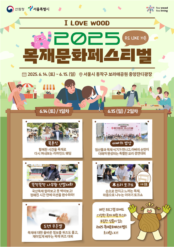 | 목재문화페스티벌 | 6.14 ~ 15 | 보라매공원 | 나무 체험 & 업사이클링 콘텐츠 |
