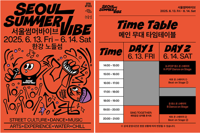 | 서울썸머바이브 | 6.13 ~ 14 | 노들섬 | 뮤직·댄스·아트 종합 문화 페스티벌 |
