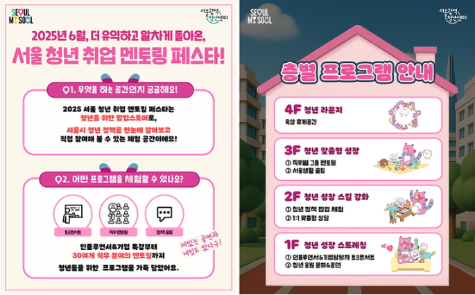 오늘은 성수동 '더 가베'에서 6월 19일 부터 21일까지 개최되는 '2025 서울 청년 취업 멘토링 페스타'를 소개했습니다.