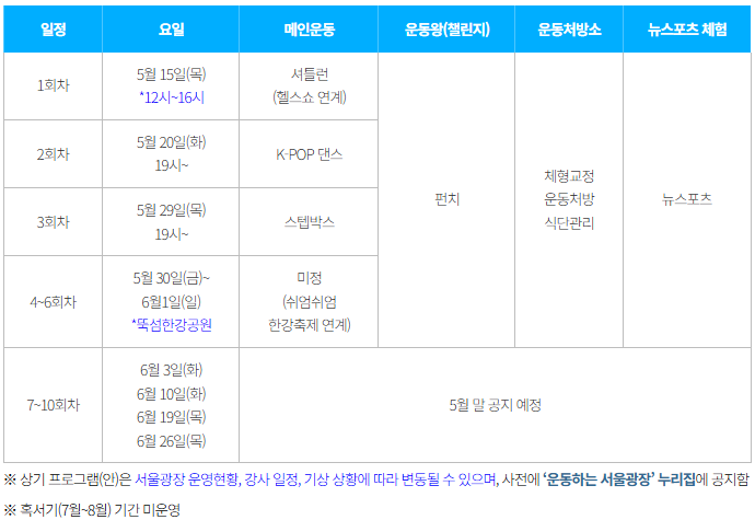 '운동하는 서울광장' 상반기 프로그램