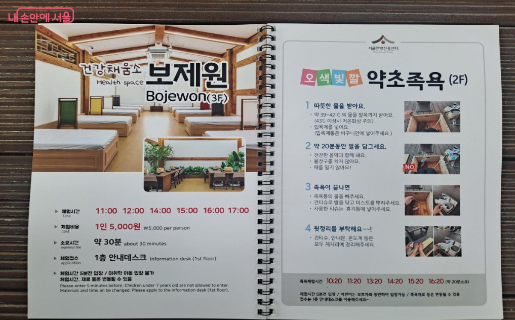 약초 족욕 체험에 대한 설명이 있는 책자가 비치돼 있다. -서울시-