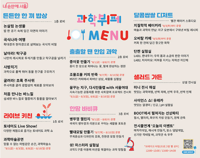 서울시립과학관은 2025년 8월 1일부터 10일까지 열흘간 ‘한여름의 과학관’ 행사를 개최합니다. 이번 행사의 콘셉트는 바로 ‘과학 뷔페’!